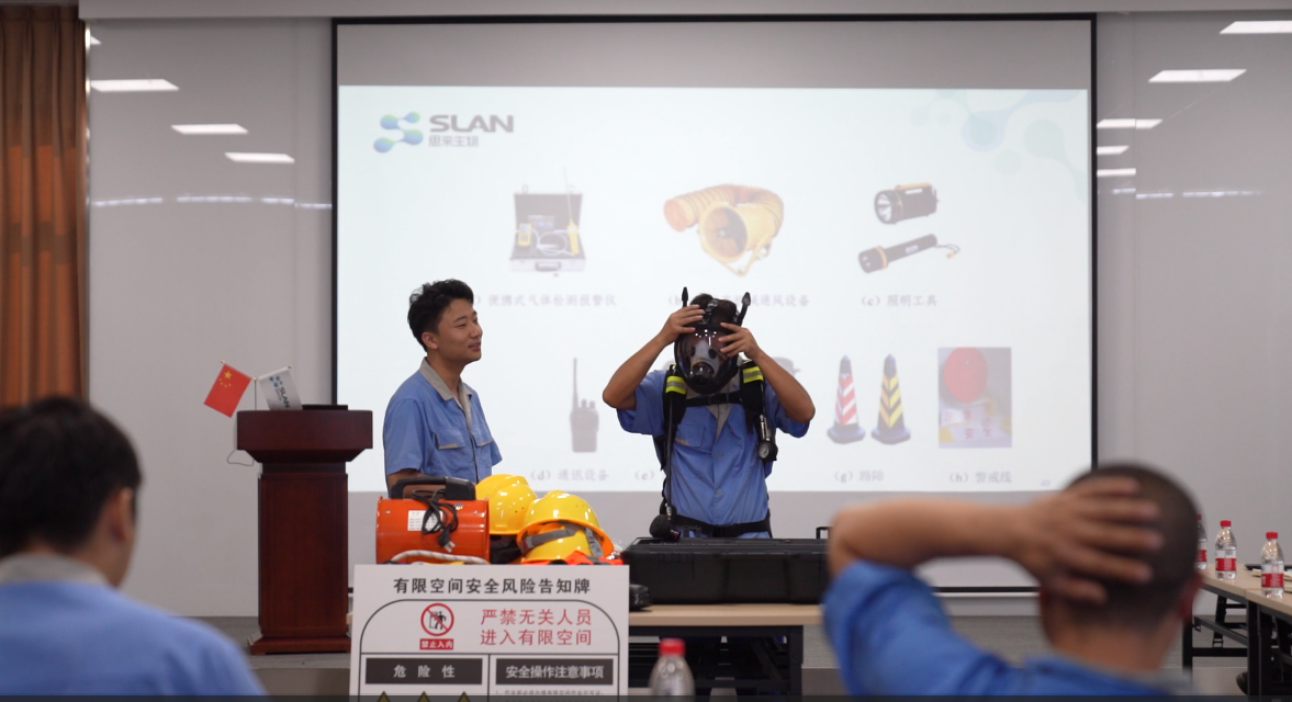 上午9:00,在思來生物的四樓會議室,講解員帶大家再次熟悉“作業(yè)安全須知”,在全流程講解后,請相關(guān)培訓(xùn)人員為大家講解安全作業(yè)的各項設(shè)備并邀請大家現(xiàn)場上手熟悉各設(shè)備的具體用法。在抽查確定大家對作業(yè)流程和設(shè)備使用的熟悉度達(dá)標(biāo)后,全體員工到達(dá)生產(chǎn)車間進行動態(tài)作業(yè)實操。